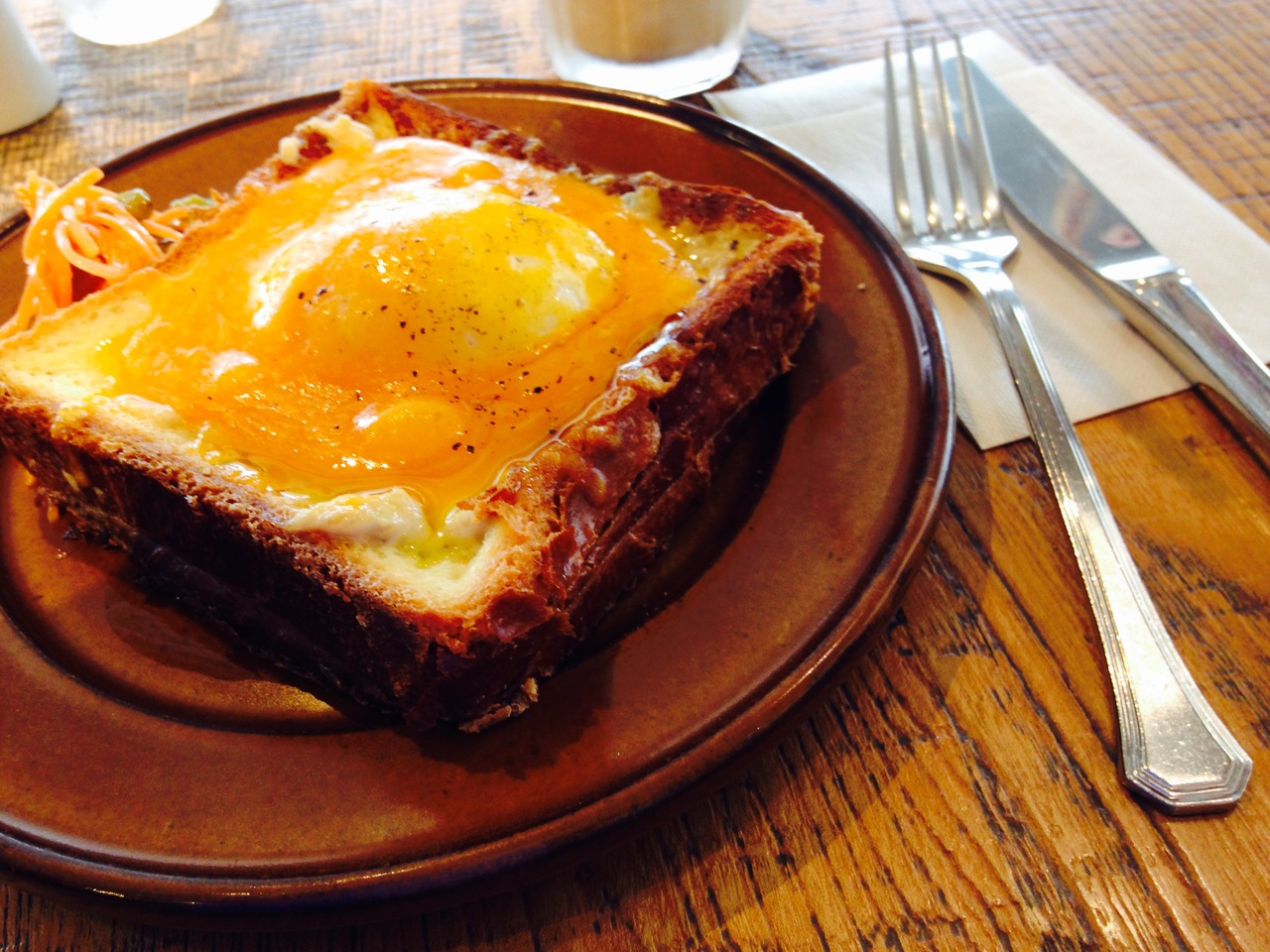 アフタヌーンと言えばティーなんだろうけど、無意識にアイスカフェラテとフレンチトーストエッグベネディクトを注文。