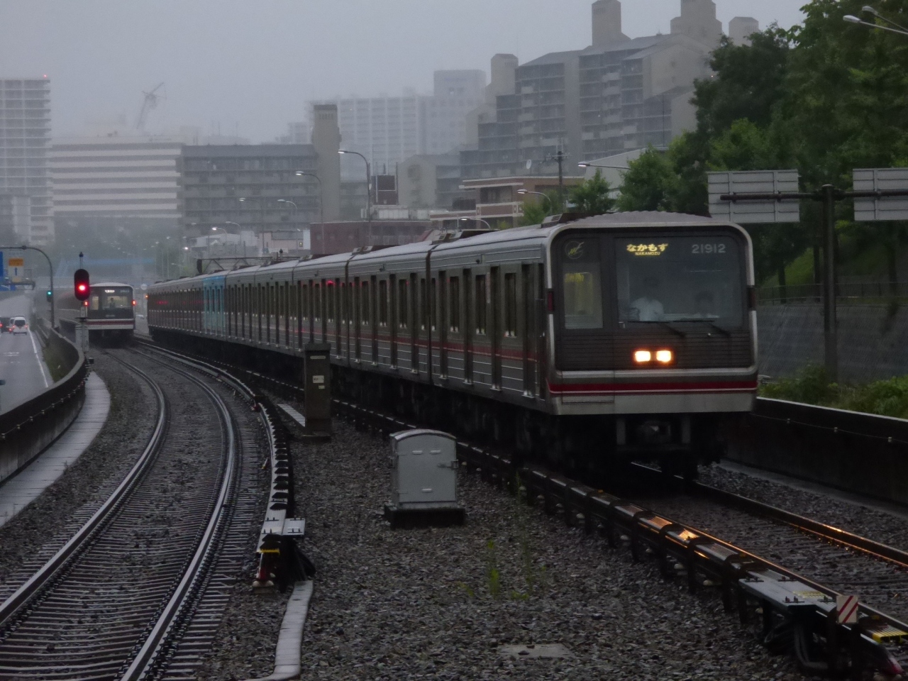 大阪万博のときに会場まで開業した路線が、今は千里ニュータウンの足として活躍しています。地下鉄御堂筋線との直通運転があるので、大阪市の中心部へ便利なアクセス。地上を走っていますが、架線がないので見通しがいいです。