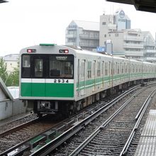 大阪市の中心部を東西に横断する地下鉄路線です。写真のように、御堂筋線と同じデザインの車両が色を変えて走っています。近鉄のけいはんな線に乗り入れていますが、生駒に行くには時間も短縮できて便利です。奈良方面の足として活躍できる存在です。