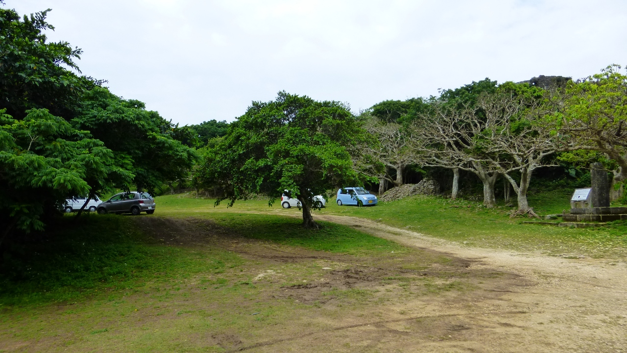 「玉城青少年の家」の駐車場を利用させて貰いましたが、城跡入口から入った所にある斜面上の広場に車を停めても大丈夫のようでした。