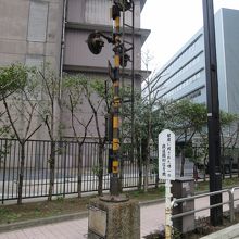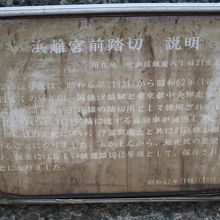 浜離宮から銀座方面に歩いていくと銀座8丁目付近の道路脇に踏切にある警報器がポツンと立っています。線路もないのになんでこんなところにあるのかと思い近づいてみると「銀座に残された唯一の鉄道踏切信号機」の看板がありました。今は道路になっているところに市場への引き込み線があったようです。