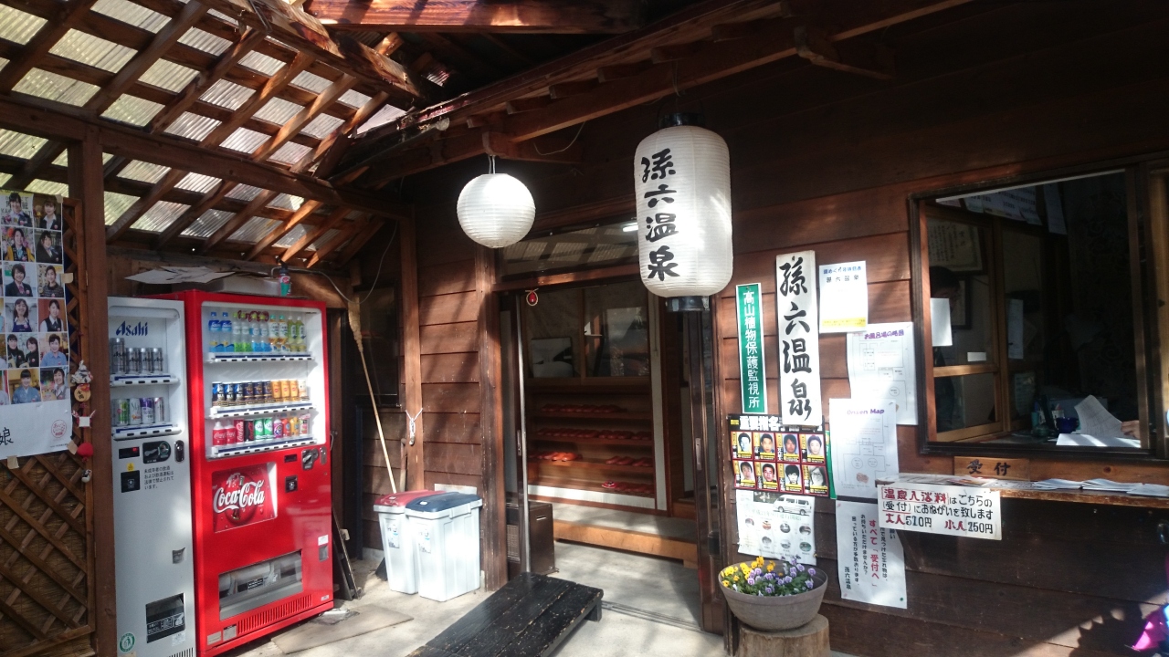駐車場からじゃり道を歩き、孫六温泉日帰り風呂を利用