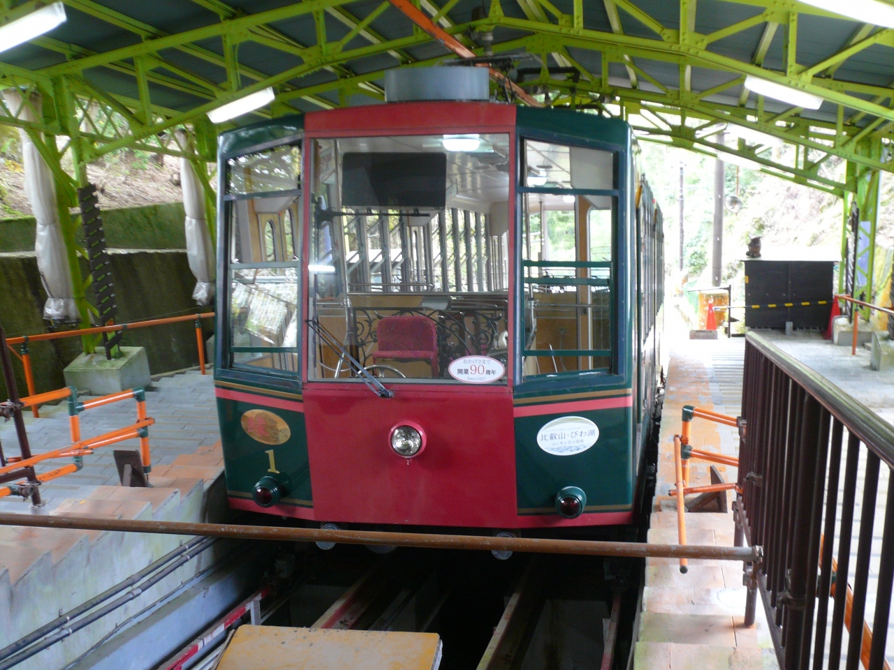 日本一長い距離を行くケーブルカーです。根本中堂から徒歩10分で駅に到着。昼間は毎時0分と30分に発車するのでとてもわかりやすいです。(ケーブルカーなので登りも下りも同時に発車します。)所要11分で坂本まで下ります。