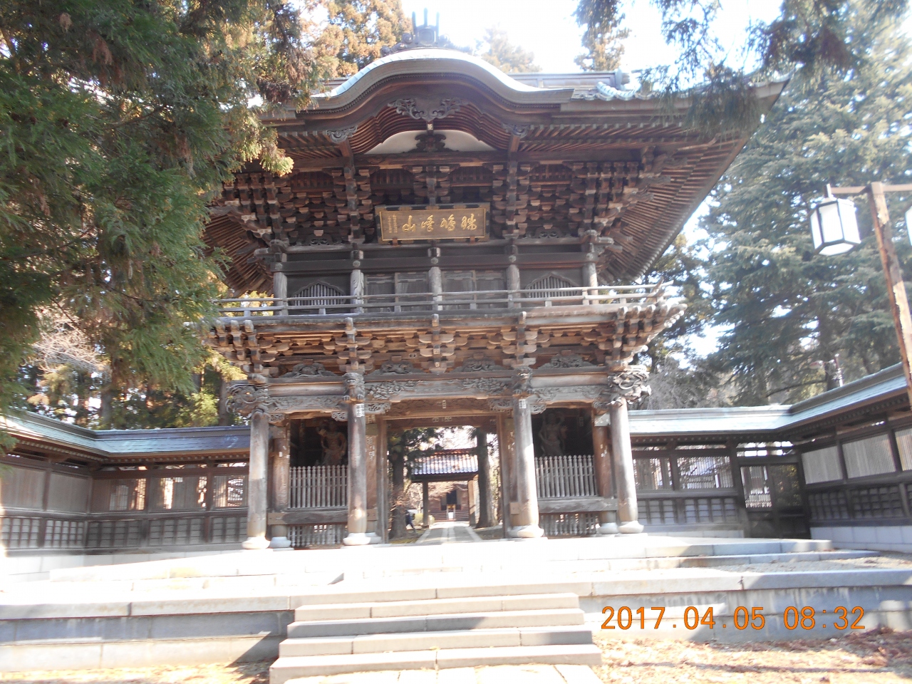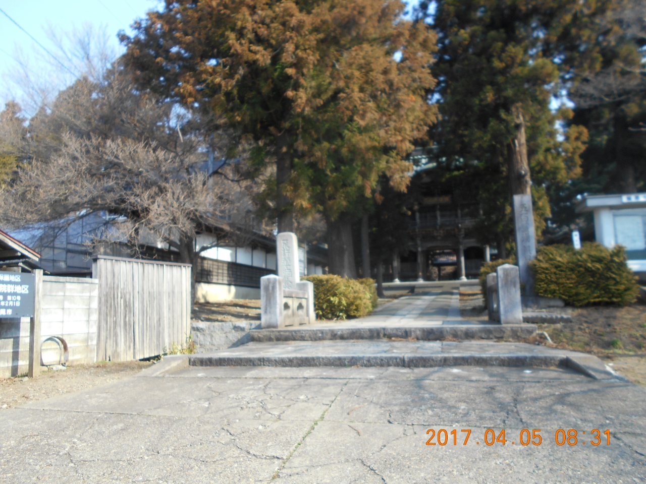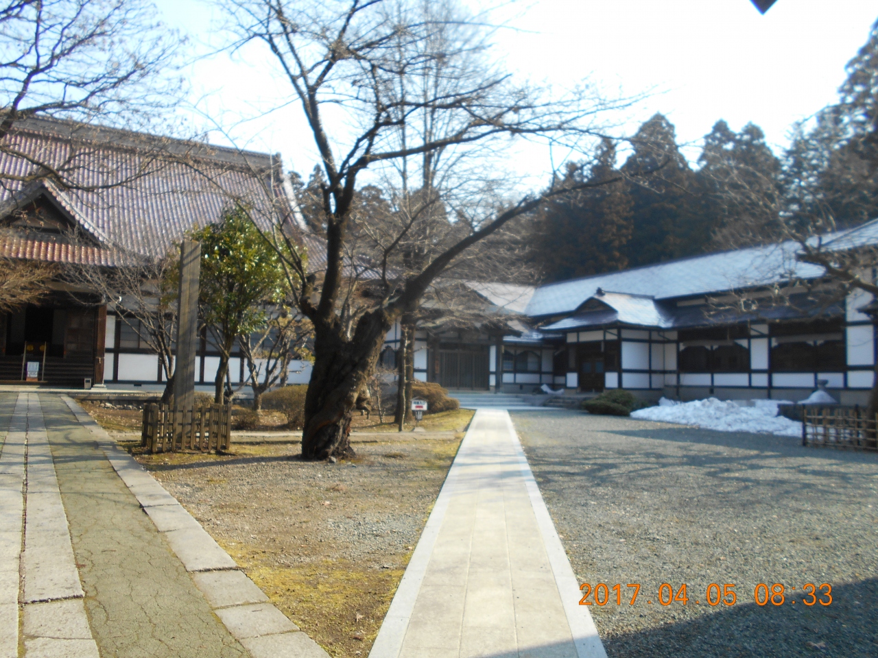 北山寺院群の道に沿って歩いていくと 道からずっと奥まったところにとても立派な山門があるのに気づきました。 幅の広い石畳の道を入っていくと山門の奥にはとても広い境内があり 日陰の部分には4月に入ってもまだ雪が一部残っていて ここは北国なのだと改めて思いました。
