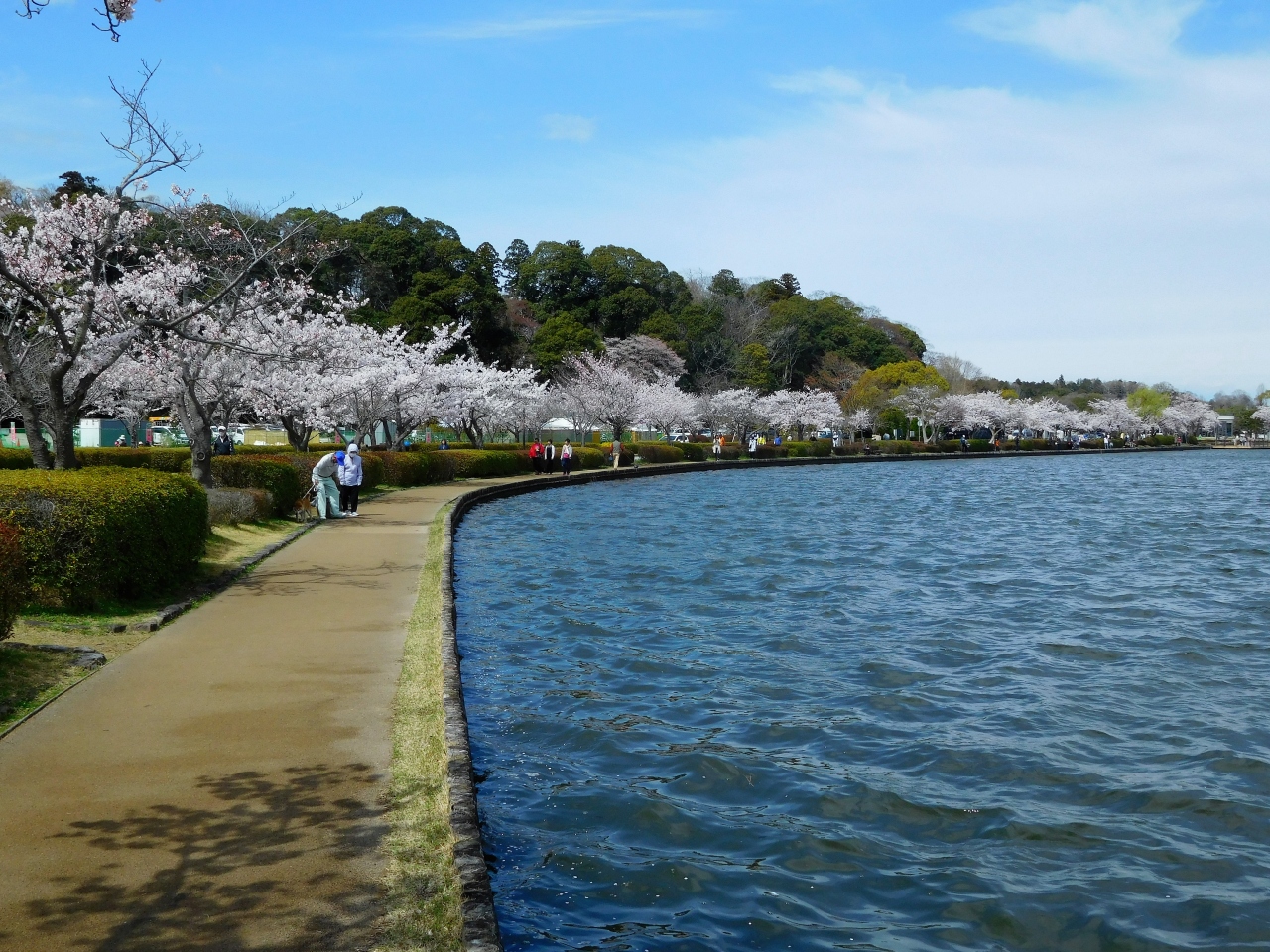 千波湖は水戸市民のオアシス。いつ行っても癒やされます。湖の周りは、岸辺の土の歩道、その外にアスファルトの歩道、そのまた外に車道と分離されているので、安心して歩けます。4月は桜を観に行きました。5月は「水戸肉メシバトル」で様々な肉料理を楽しみ、オオハクチョウも見てきました。