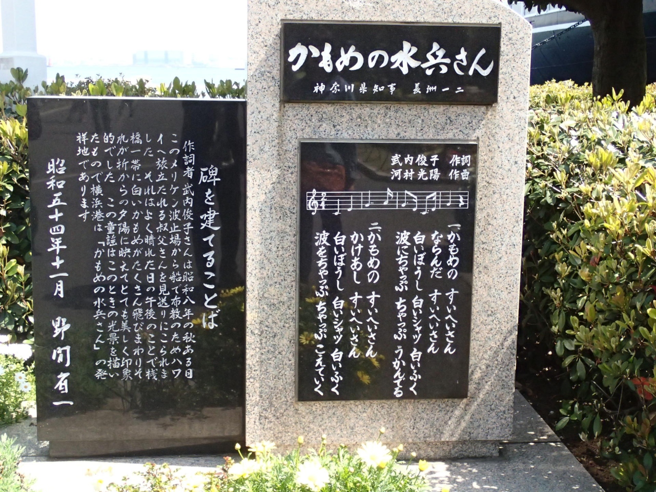 童謡の「かもめ~の水兵さん ならん~だ水兵さんっ」の碑が、山下公園の中にあります。