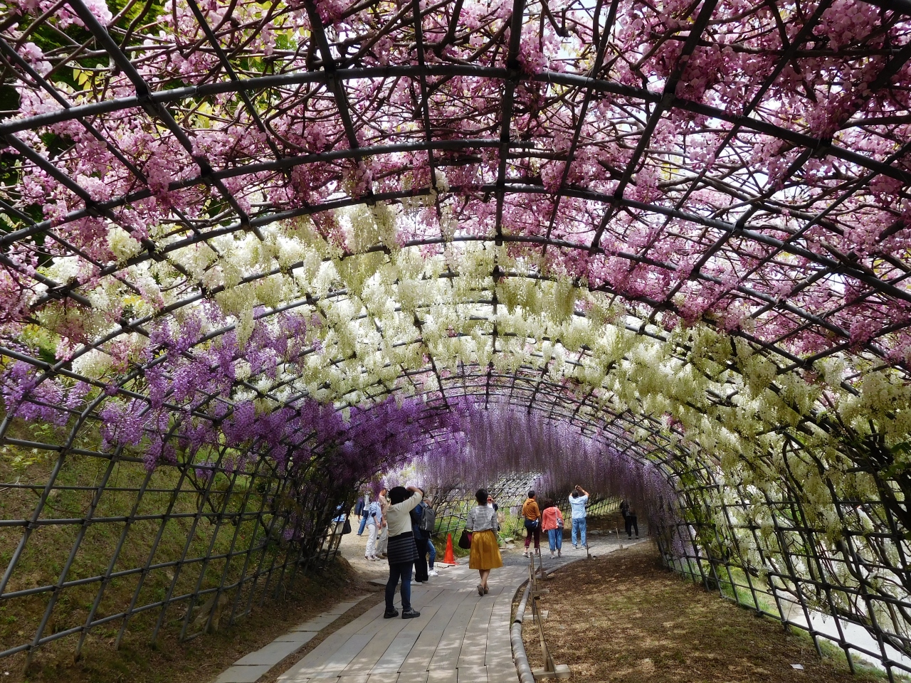係の人は「上の方から見てください。あと2、3日したら見られなくなります。」と言われたので上から藤棚を眺めましあt。