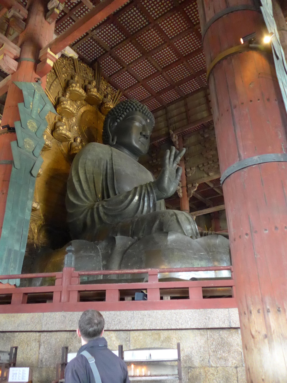 奈良と言えば大仏という気もして、春日大社からの帰りに訪問。回廊の改修工事中ということで数年前に訪れた際とは異なり、外の仮設ブースで拝観料を払って入場。