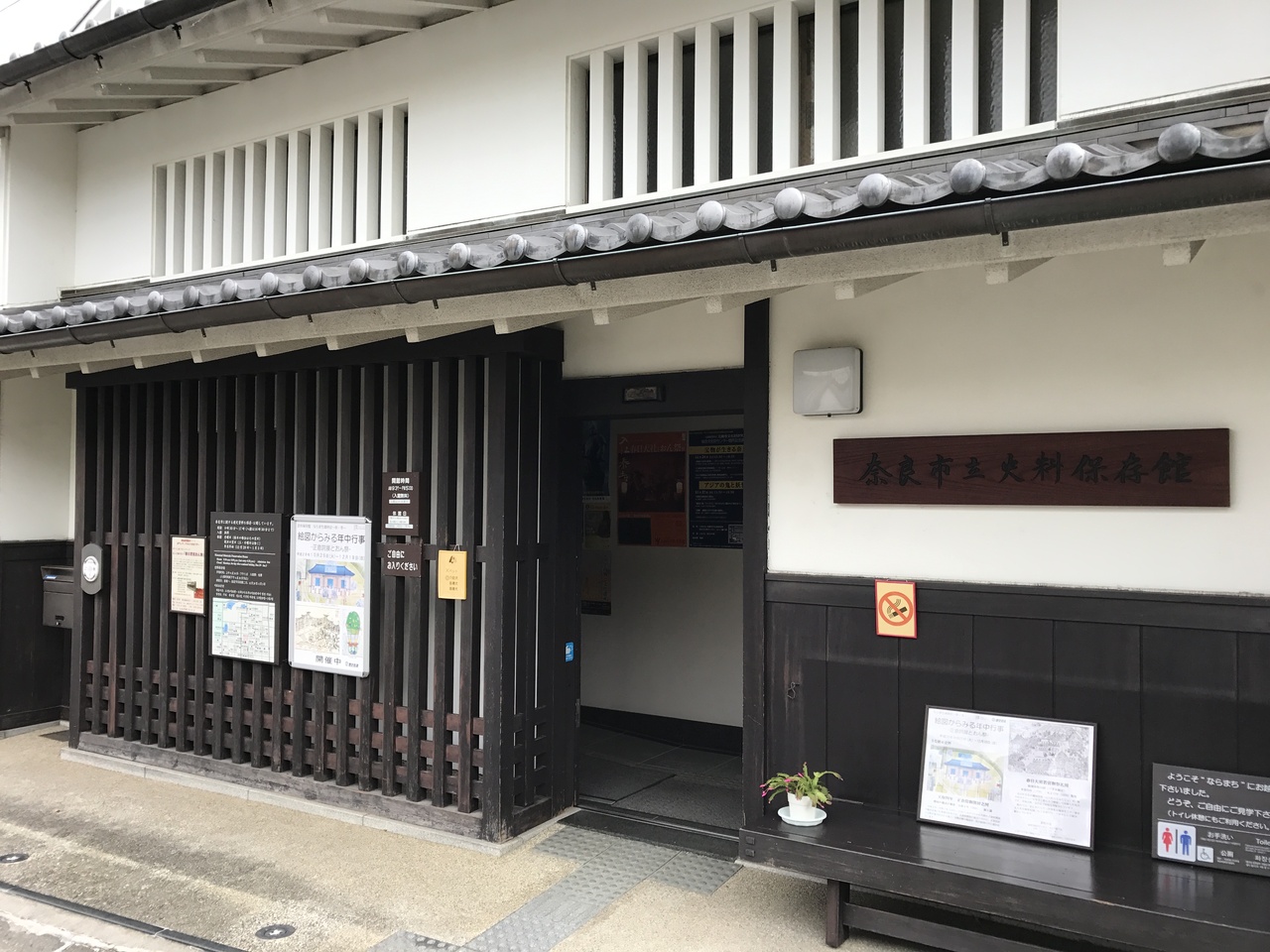 奈良の街を散策しているときにトイレ休憩として利用できる公共の場所が、奈良の市内にいくつかあり、この「奈良市立史料保存館」はその一つ。歴史資料などの展示をしている施設で、無料で入れる。昔、現在の奈良の街が、平城京の外れだったことなどもよくわかる展示。
