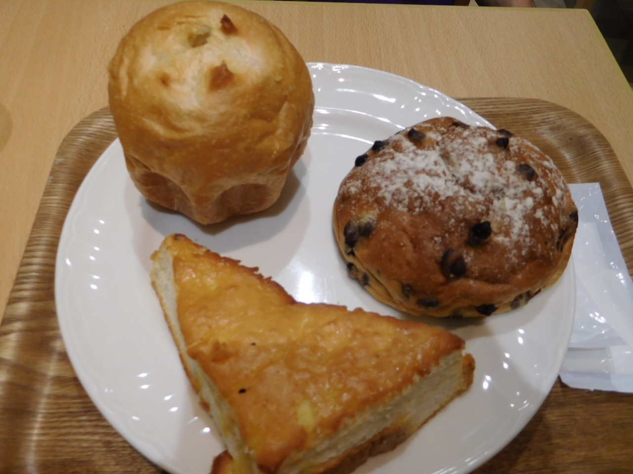 イオン鹿児島鴨池店の1階、中央プラザ近くにあるパン屋さんです。お店の奥の方にテーブル席がいくつかあるので、コーヒーなども注文して、店内で食べて行く事も出来るようになっていました。19時過ぎだったので、あまりパンの種類がありませんでしたが、3個購入し、席で食べて行きました。お水(レモン水)は、無料で(セルフサービスで)頂けました。軽くパンを食べたい時に便利です。