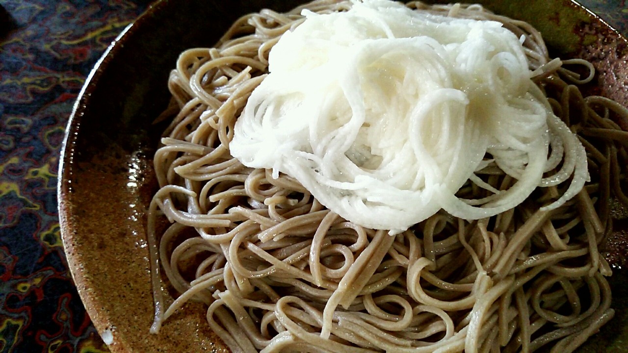 お蕎麦はもちろん、旬の山菜の天ぷらが美味でした。馬刺しも食べればよかった…。そば湯はかなりトロトロです。