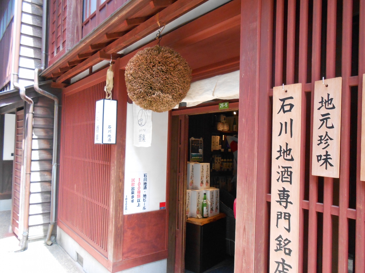 金沢市内の観光スポットとしても人気の「ひがし茶屋街」の一角にある石川の地酒を扱うお店です。店内にはたくさんの種類の地酒があり、有料(1杯500円)で試飲することもできるので、試飲して気に入った地酒があれば、おみやげに購入するのもオススメです。