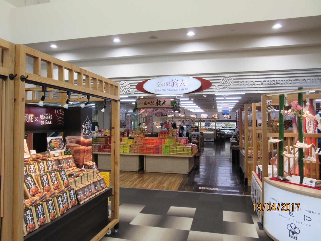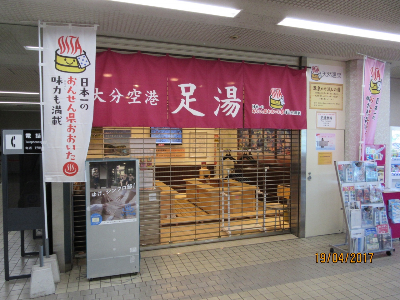 羽田空港から約1時間40分。3階建てで1階が到着とコンビニ、2階が出発と大きな土産店が一つ、3階がレストランと展望フロアであった。特徴的だったのは1階に無料足湯(11時~18時30分)があり、さすが温泉県だなーと思った。国際線ビルもありソウル行一日1便運航、ジェットスターの成田行きが1日3便運航していた。