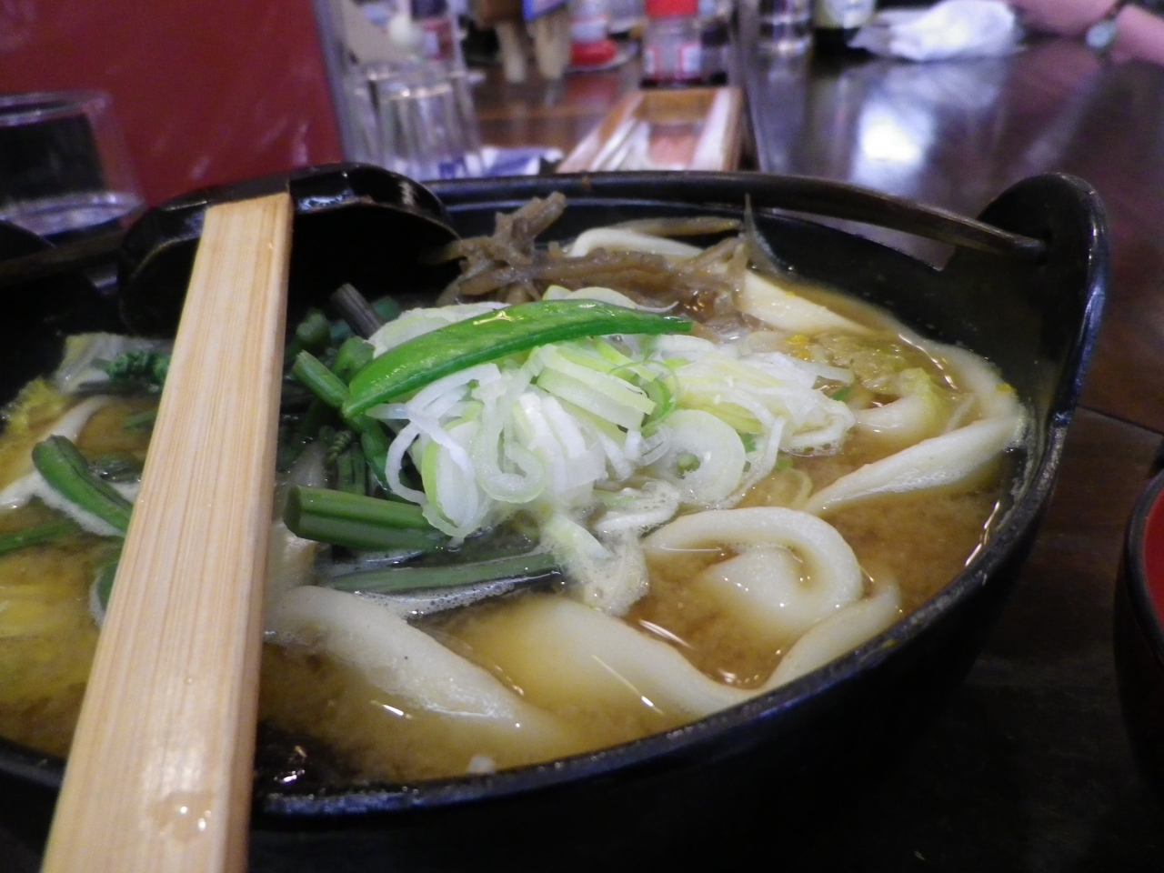 小麦粉うどんが汁を吸って膨張するのを防ぎつつも、野菜類を貪り食う。味噌味の汁も実に良い感じ。