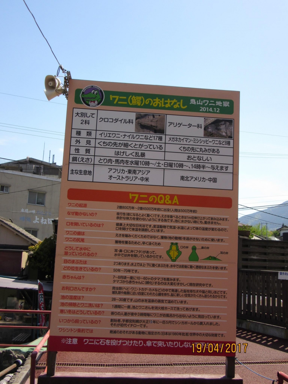 別名【ワニ地獄】で大正時代に日本で初めて温泉熱を利用したワニの飼育を始めたところ。約70頭のワニがいくつかのおりに分かれて飼育されていた。全く動かないかさかさのワニが一杯で不気味に目だけが動く姿は気持ち悪く、この地獄はちょっと見て足早に失礼した。この地獄はパスすれば良かったと思った。