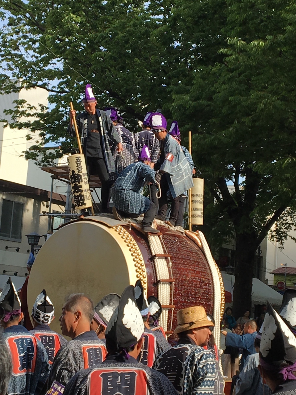 ゴールデンウィークに行なわれることもあってとても混み合うお祭りですが、朝早い神輿還御は比較的空いています。大太鼓に導かれた神輿が次々に大鳥居に帰ってくるのを真近に見られました。朝日に神輿が輝いて、とても美しいのです。
