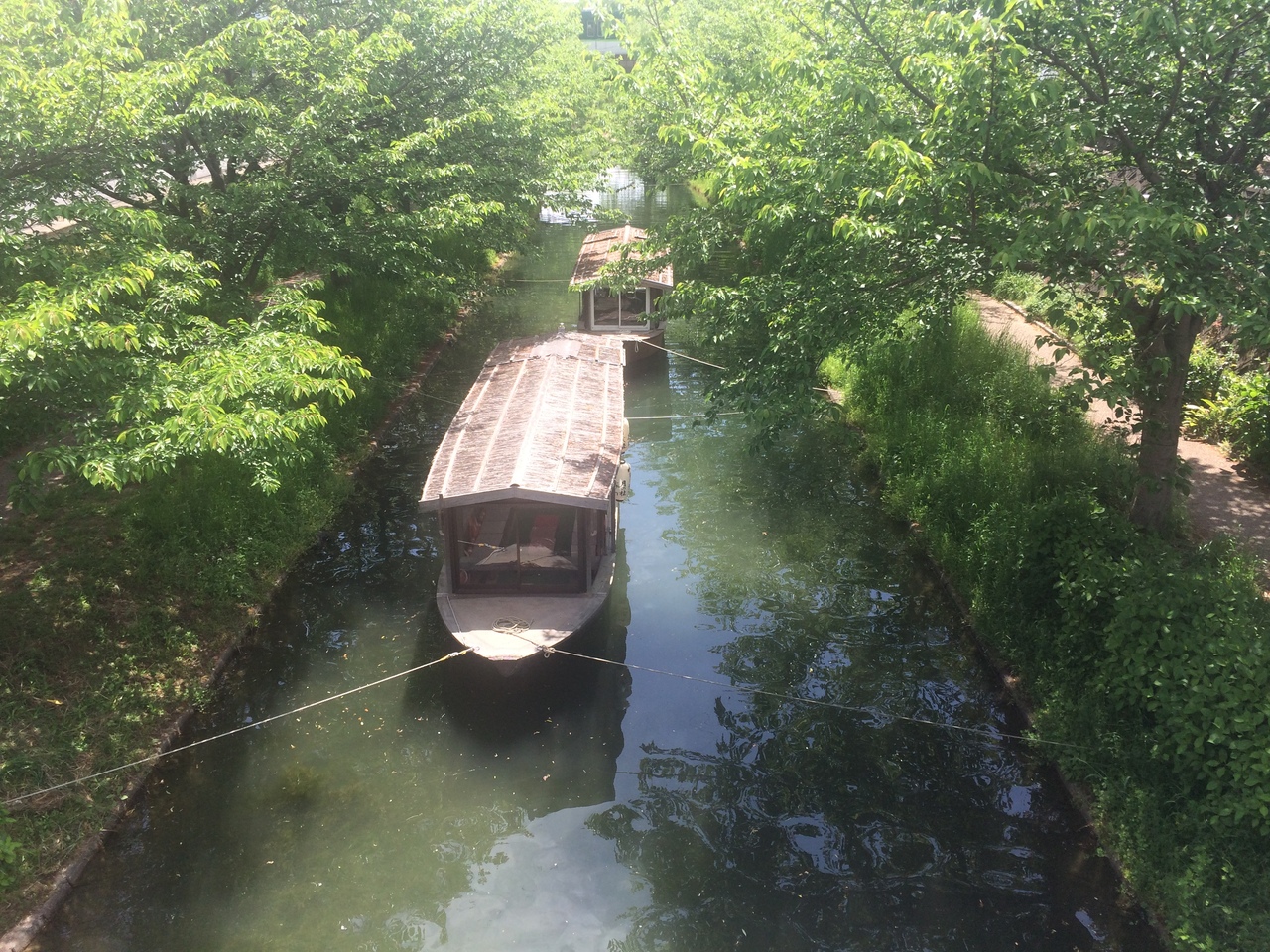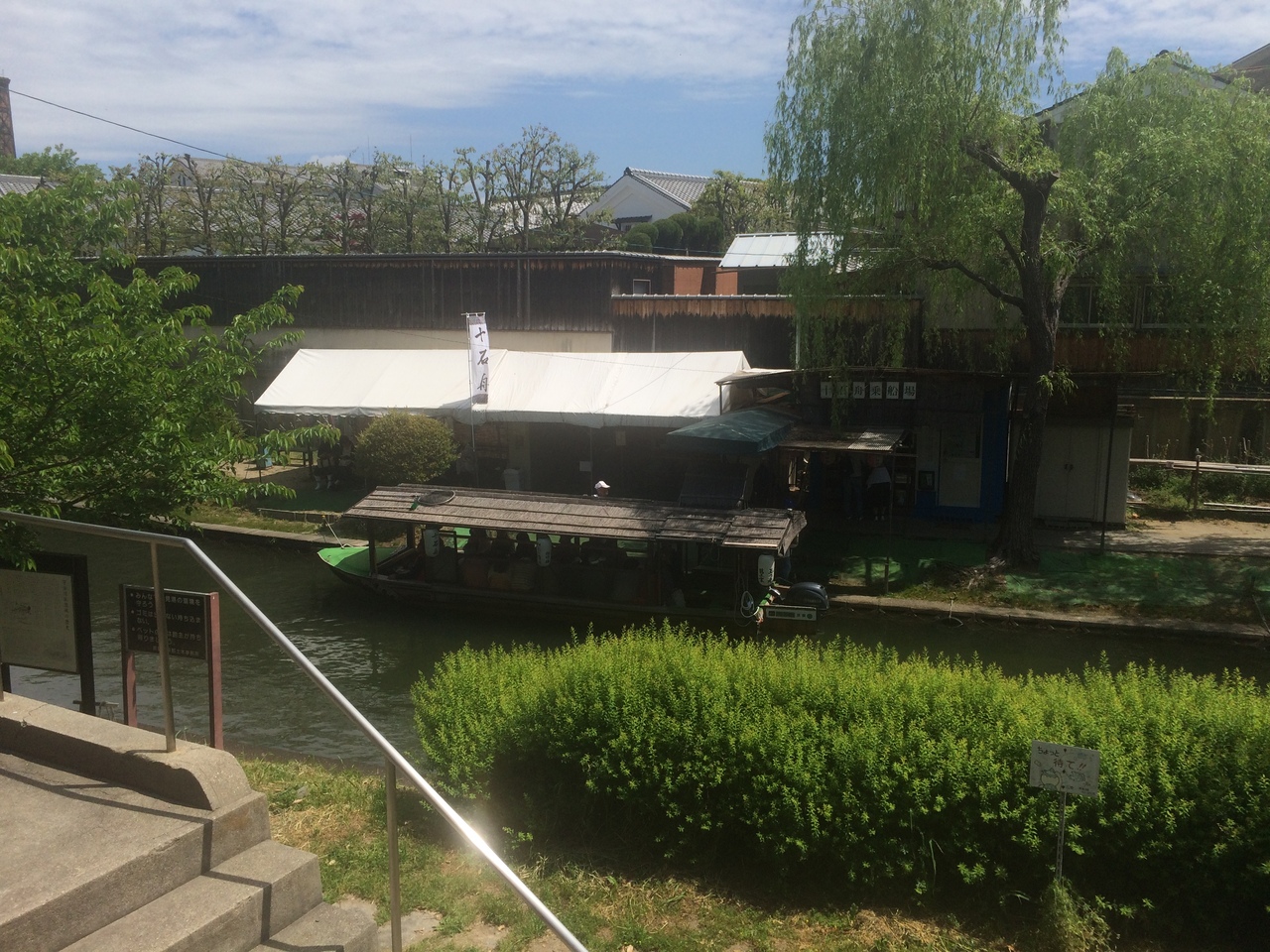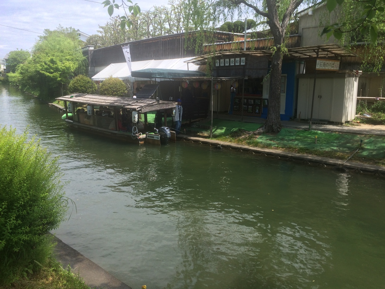 定員20名ぐらい約一時間の舟旅です。宇治川派流の緑が美しく川幅が短いので川沿いの道まですぐなので景色を楽しめました。途中、舟を降りての見学場所があります。乗り場から見る長建寺と川に架かった橋の雰囲気が特に良かったです。