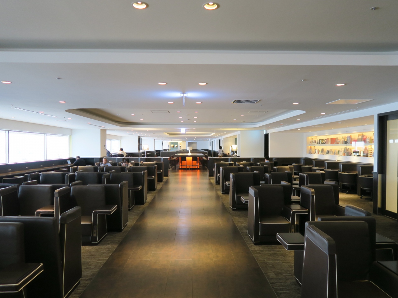 ラウンジは横広で綺麗な感じ。大よその席に100V電源が設置されている。
