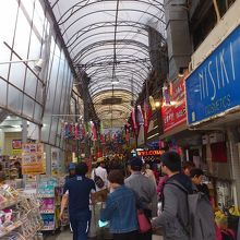 国際通りから枝分かれしている通りがたくさんありますが、このむつみ橋通りもその一つです。名前の通り、むつみ橋の交差点から中に入って行きます。アーケード商店街で、新しくはないですが、地元感満載の雰囲気です。そのまま進んで行くと、牧志公設市場にたどり着きます。