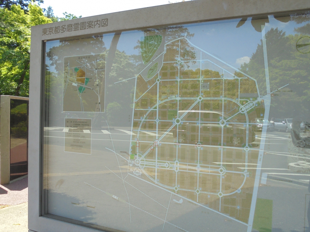 ただ園内は広大で似たような景色が多くあり、さらに斜めの方向に連なる道やロータリーが所々にあることで一体どの辺りにいるのか分からなくなることもあるのでご注意を。特に街灯がほとんどなく暗くなると墓所だけにかなり怖いです。