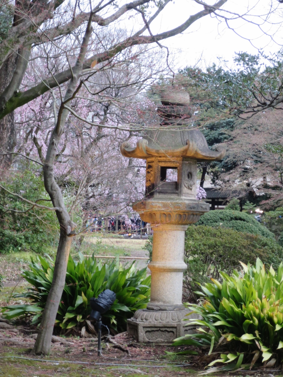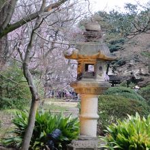 六義園の中には、いくつかの灯篭がポイントポイントに風景のアクセントとして建てられています。木立の中には神社などで見かける高さのある春日型灯籠、湖畔などには傘が大きく高さの低い雪見型灯籠の2種が見かけられます。