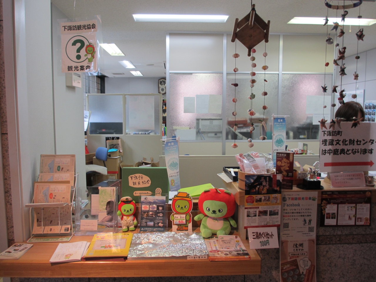 諏訪大社下社秋宮近くにある時計の博物館・儀象堂の中にあります。儀象堂で行われている時計製作体験の受付の方が、観光案内も兼ねて行っています。受付には諏訪市の観光マップに加え、周辺各地の観光パンフレットや割引券などが置かれています。時計の完成を待つ間、受付で次の場所への行き方や観光スポットなどについて尋ねることもでき、時間を有効に使えると思いました。