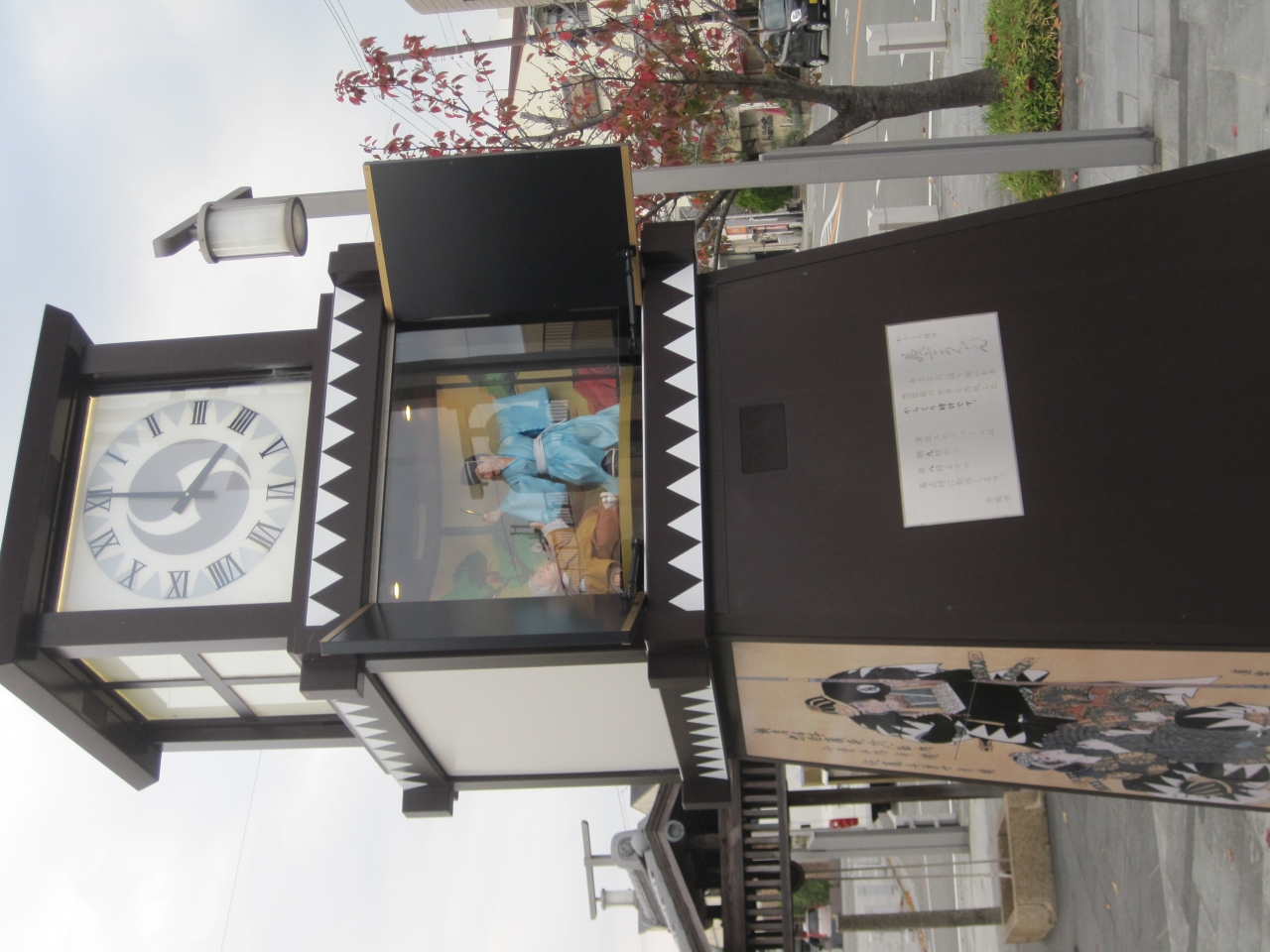 午前9時より午後8時の毎正時に太鼓の音とともに、松の廊下・早かご・かちどきの3場面を再現しています。各場面1分ぐらいですが、息継ぎ井戸の隣ですし、花岳寺からも近いので、時間が合えば見る価値はあると思います。
