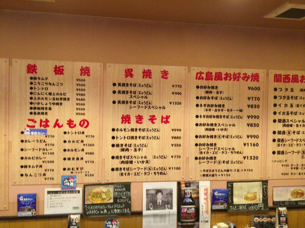 このお店では呉焼き以外にもお好み焼き(広島)やお好み焼き(関西)もあります。