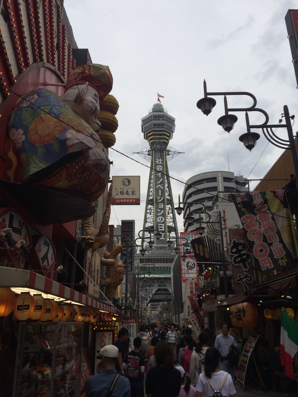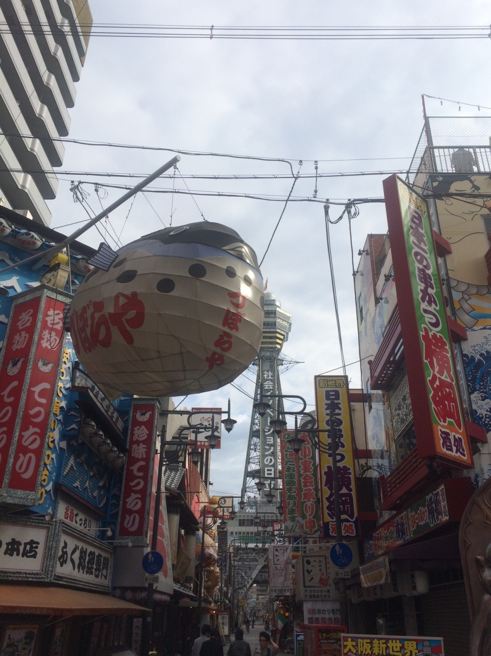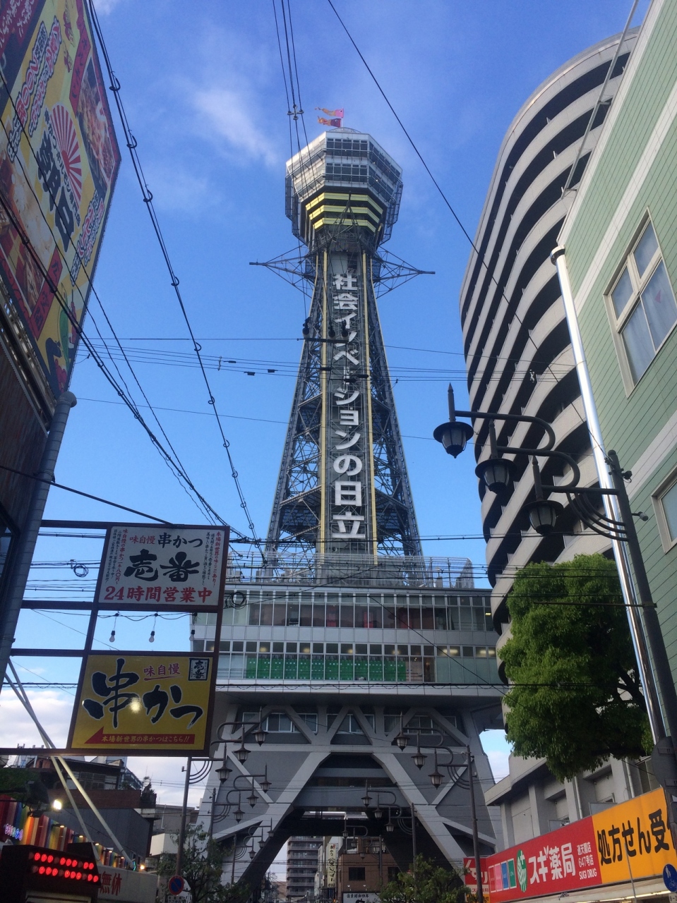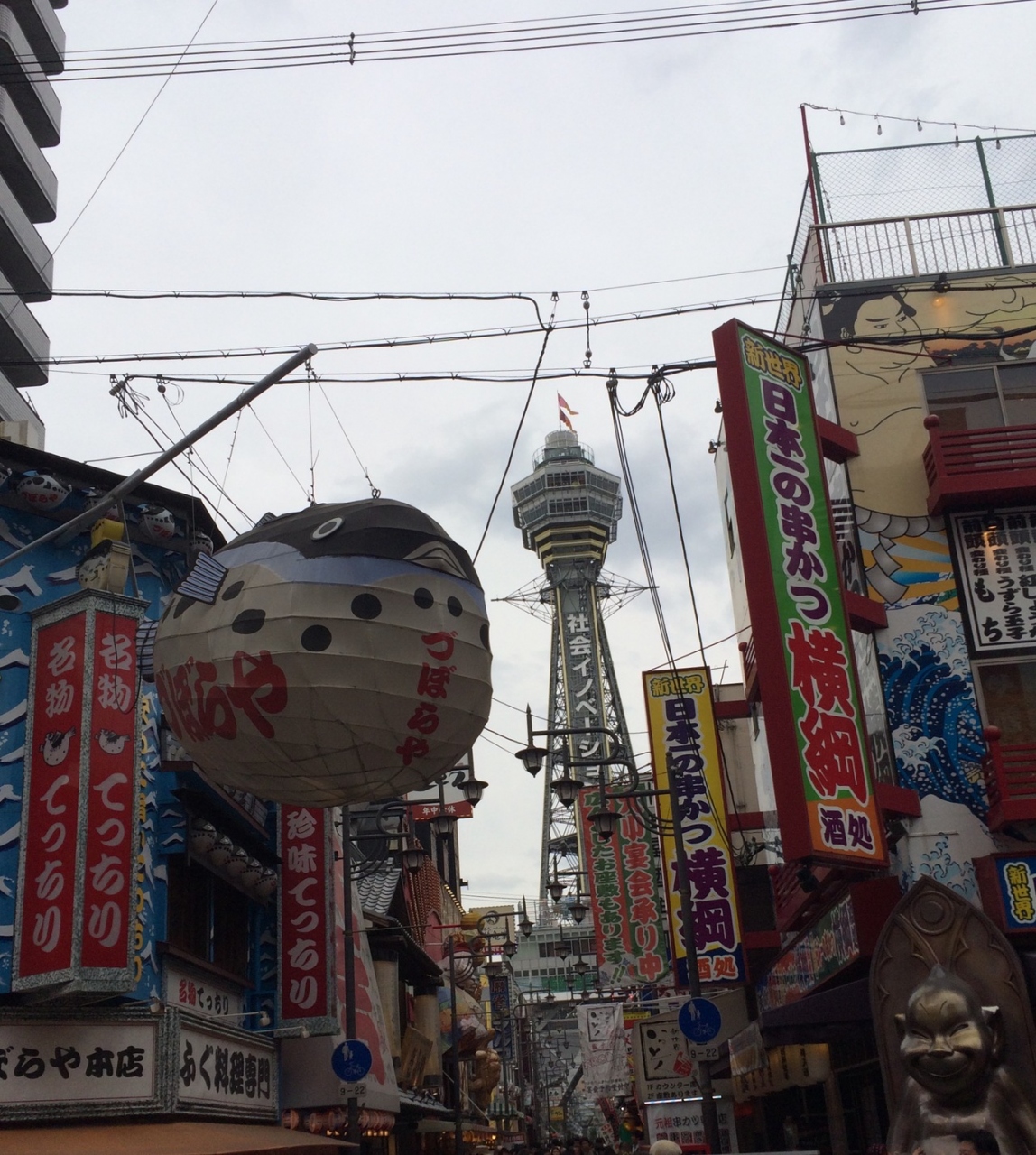 通天閣そばに宿を予約していたので天王寺公園から歩いて行きました。高い塔なので公園からも見えて迷わずに行くことが出来ました。通天閣周辺は観光客でごった返し物凄い人だかりでしたがテーマパークのような雰囲気で店の看板も特徴がありました。通天閣へは上るのに並んでいたため上には行かず下から写真を撮りました。