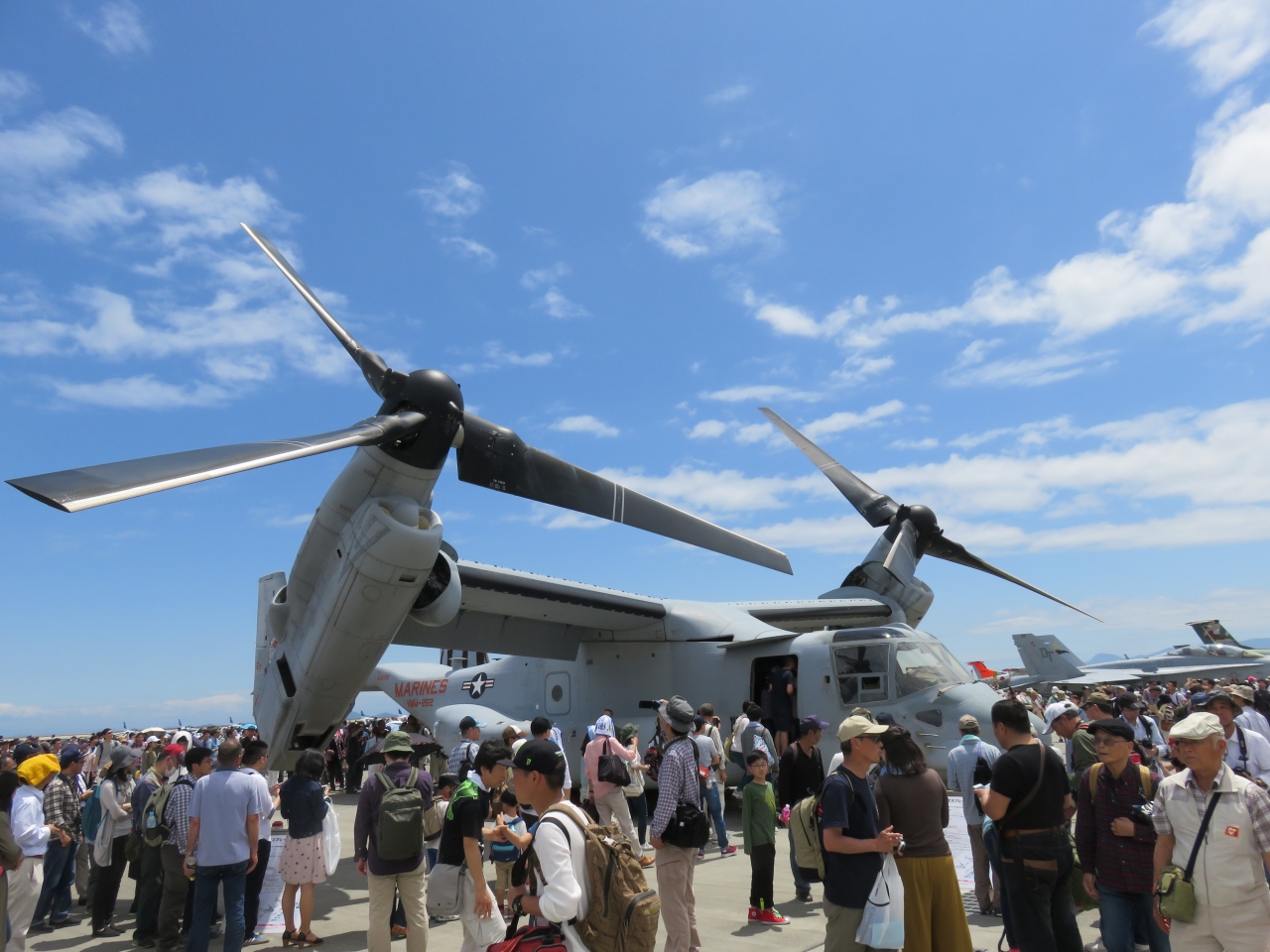 航空機ファンやメカ・ファンなら、たまらない場所となるだろう。私は特にハリアーやF-16などのジェット戦闘機のデモ・フライトにいつも興奮させられる。今回はオスプレイもデモ飛行したし、他に、曲芸飛行なども加わる。展示される飛行機類もF-35Bステルス戦闘機の国内初公開を始め、充実していた。自衛隊基地だけの展示とはまったくスケールが違う。ブルーインパルスのデモ飛行で締めくくられた。
