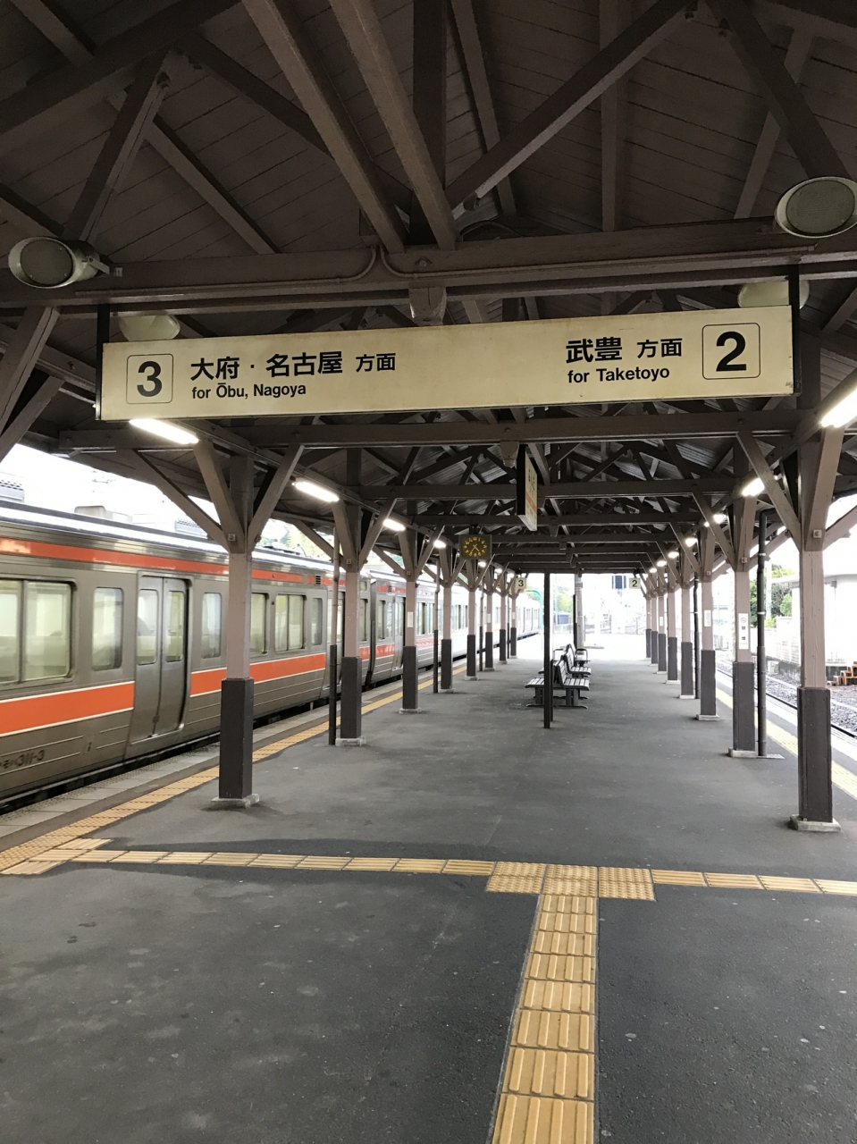 現役で使用されている鉄道遺産の最古の跨線橋を見て渡りたいがために半田駅で下車する。