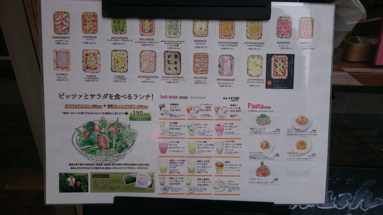 ランチサラダセットはピザの値段にプラス390円で無農薬野菜を使った新鮮なサラダとバラエティ豊かなドリンクをつけることができます。