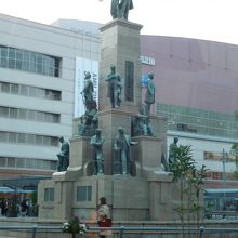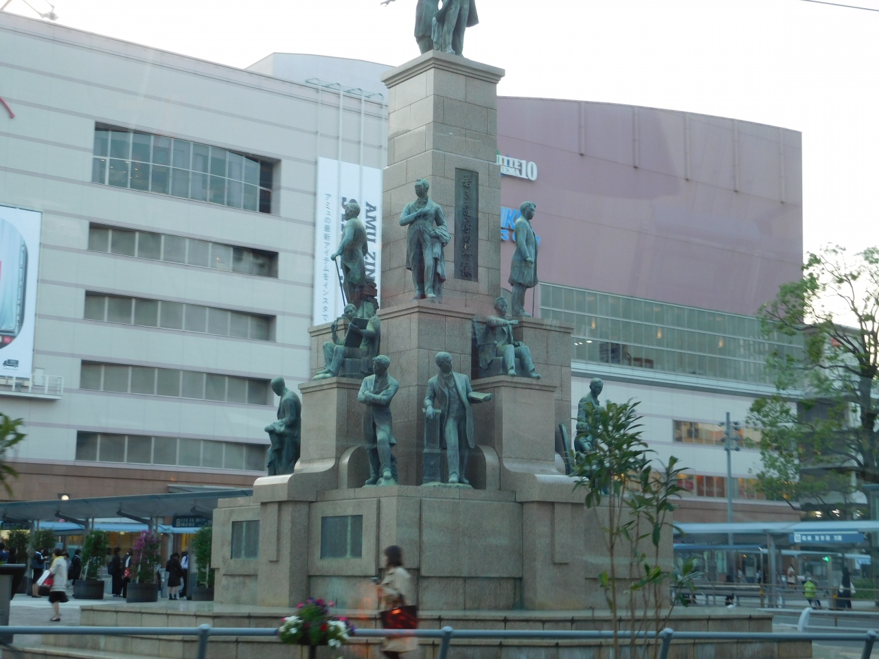 JR鹿児島中央駅前にある、巨大なモニュメントです。1865年、幕府に極秘でイギリスに派遣された若き留学生達の群像で、さまざまなポーズを取っている姿がありました。車道に面した場所にあるので、車の中からでも見る事が出来ました。