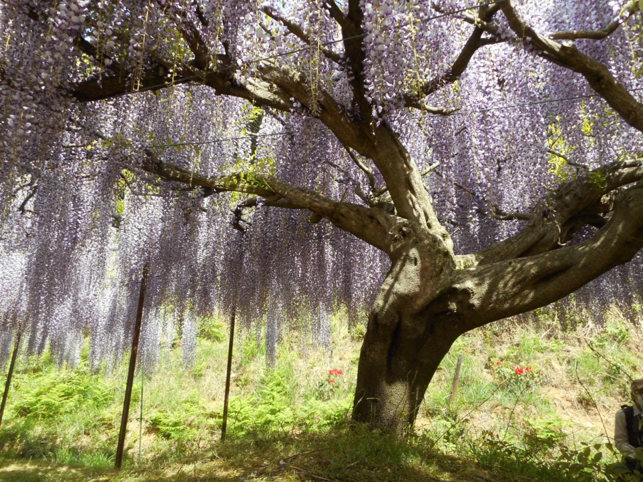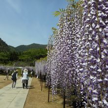花房は60cmはあり、見ごたえがありました。良いにおいがしていましたが懸念していた蜂はそれほど見かけず、安心して見れました。藤棚が低めで、中は本当に花房のカーテンのようです。