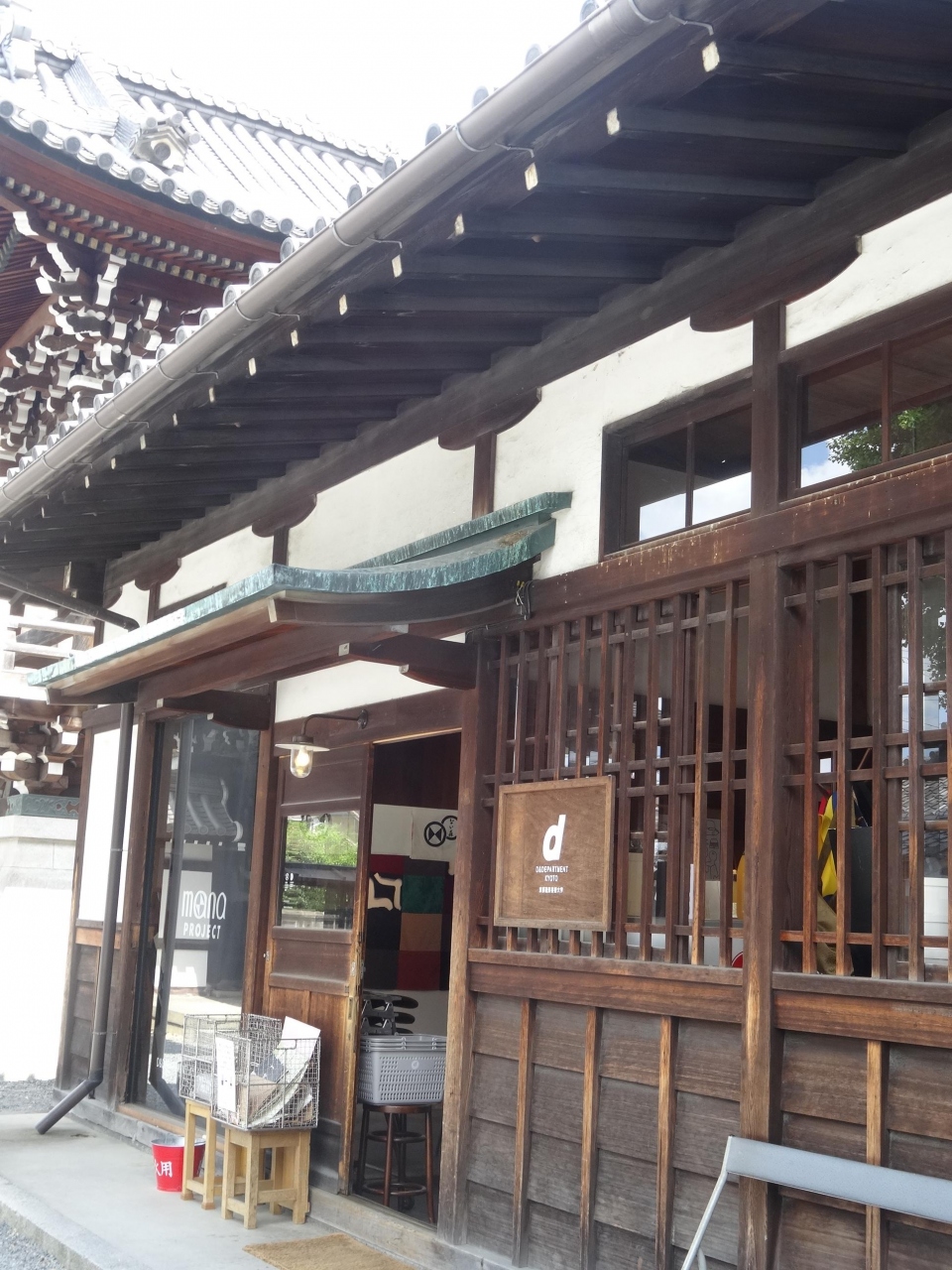 お寺内にある京都のD&DEPARTMENTです。ショップには京都限定品も並んでいます。お目当てはお茶するためのカフェ。窓際に座りましたが風がよく通って、室内にいながらめちゃくちゃ気持ちいいです。ウメサイダーもとてもおいしいでした。