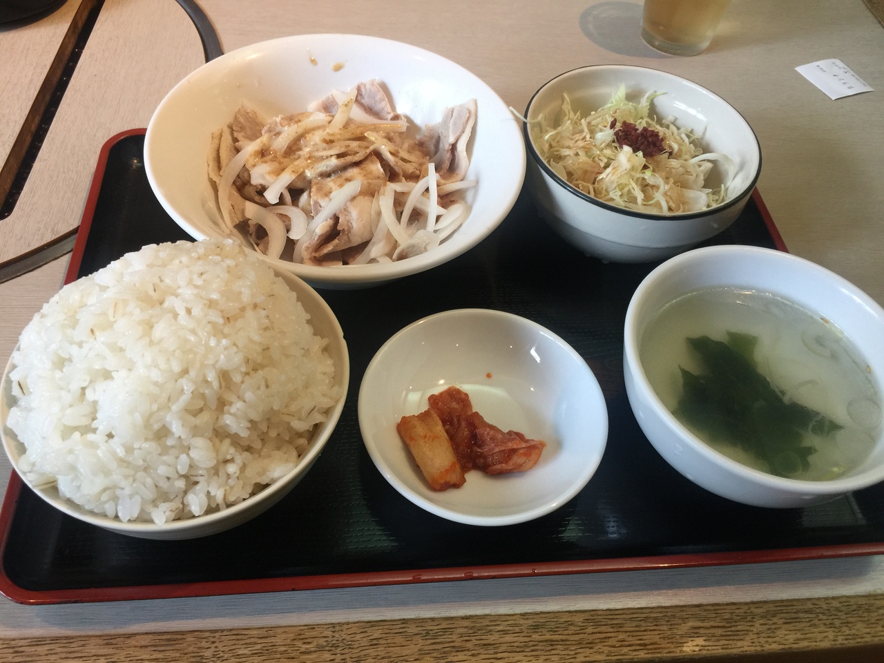 この日たのんだのは豚しゃぶゴマだれ定食!600円でご飯おかわり自由にキムチは食べ放題です(^ ^)