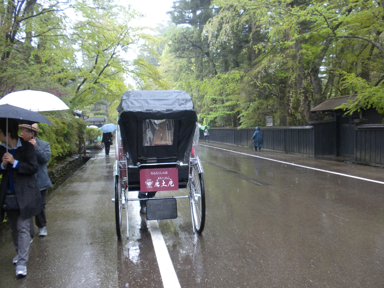 武家屋敷街の黒板塀は雨でしっとりと濡れていました。
