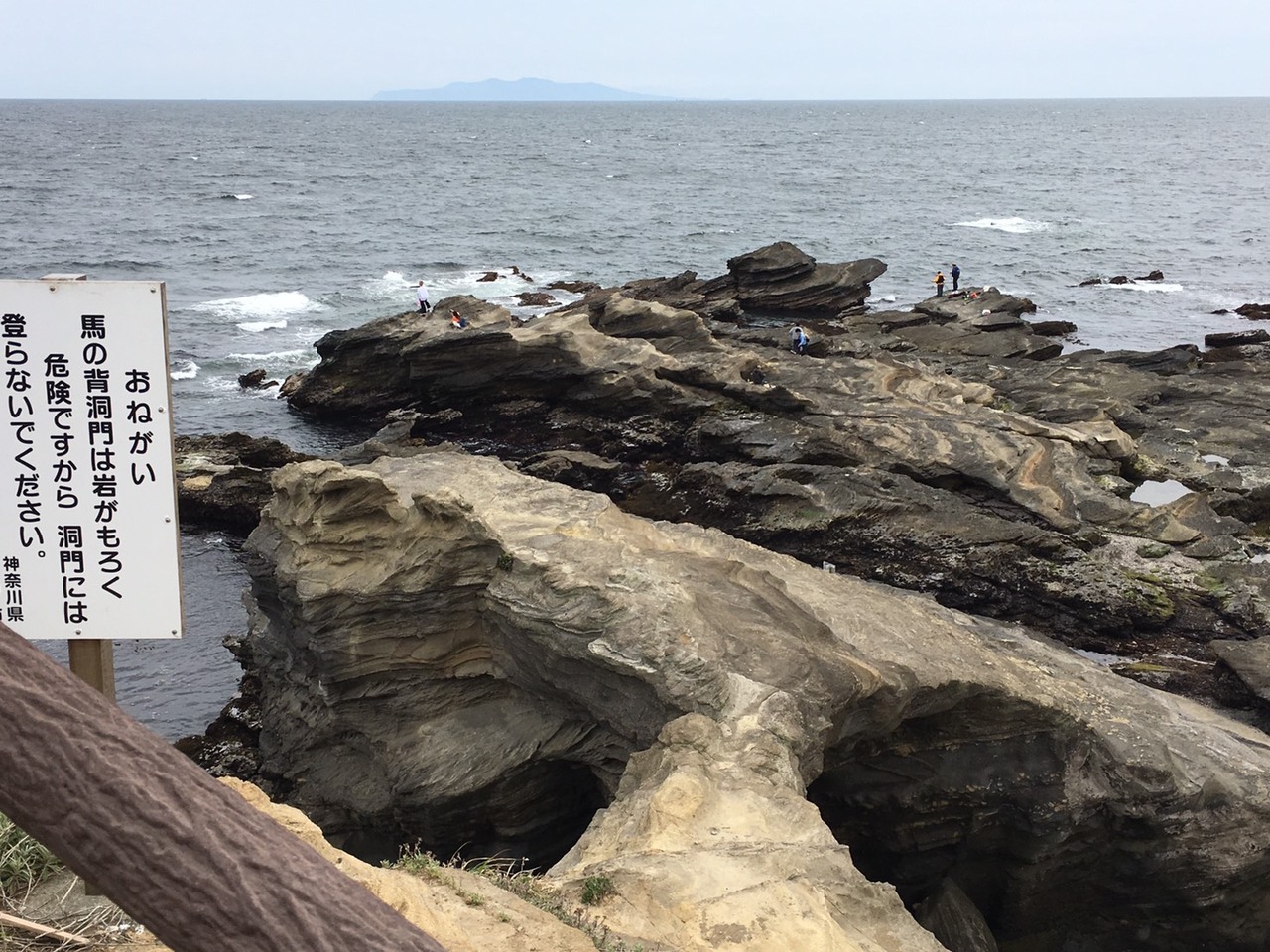 ゴールデンウィークにみさきまぐろきっぷを使って三浦半島までいきました。城ヶ島には色々見所がありじっくり回ると広いですが、有名な馬の背をみてきました。城ヶ島灯台の方から海岸線を歩き馬の背の場所の階段から上がりました。上からの景色も良かったです。足場は悪いためスニーカーをオススメします。