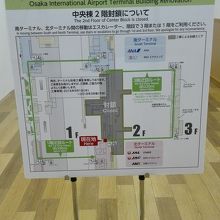 モノレールを利用して大阪空港駅改札口を出て空港ターミナルに行くため連絡通路に行くと、「ターミナルビル改修工事中」の案内が掲出されていました。