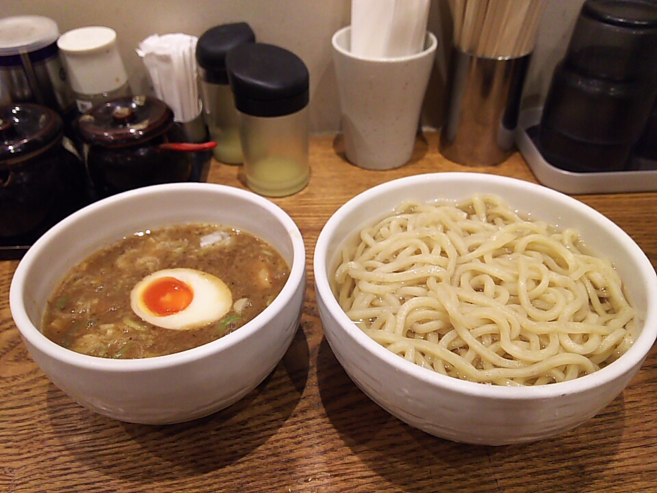 平日の20時くらいに久しぶりに行きました。カウンター席が2つあり、お客さんが5人くらいいました。入口に券売機があり、濃厚魚介豚骨つけめん(あつもり)を食べました。美味しかったです。