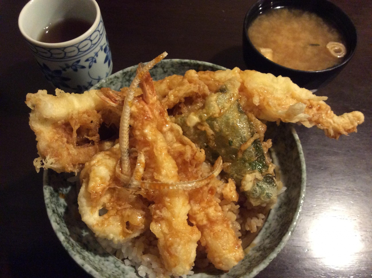 ごま油で揚げた天ぷらは美味しく、ボリュームもたっぷり。