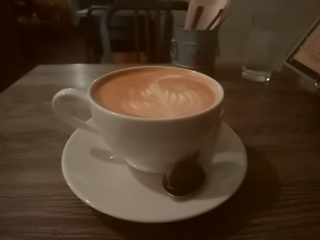 「カフェラテ」450円(税込)です。すぐに供されました。美味しい。ミルクたっぷりでもエスプレッソだ!としっかりわかる濃さが感じられます。