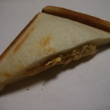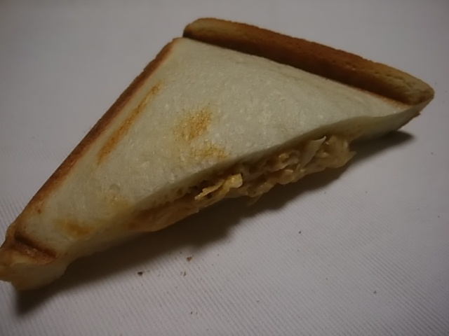 「ホットサンド・チーズチキン」194円(税込)は、トースターで軽く温めて、さっくり。たまねぎなども入っています。