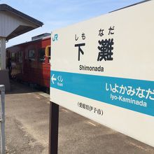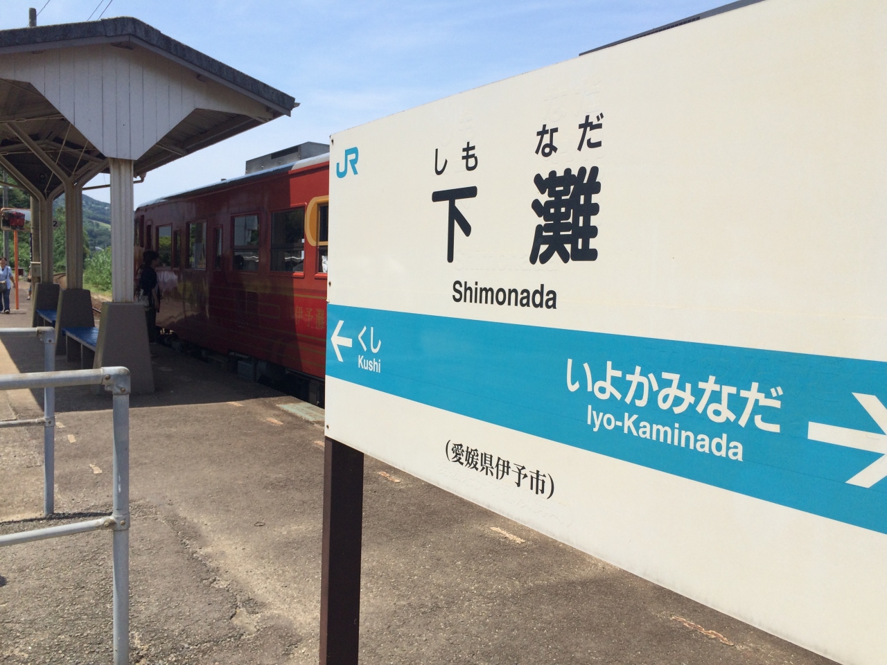 途中海そばの人気駅下灘でゆっくり停車してくれるので、これまたいい