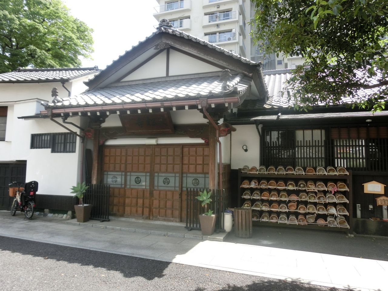入り口脇に閼伽桶がたくさん並んでいなければ、お寺とは見えないかも知れない。