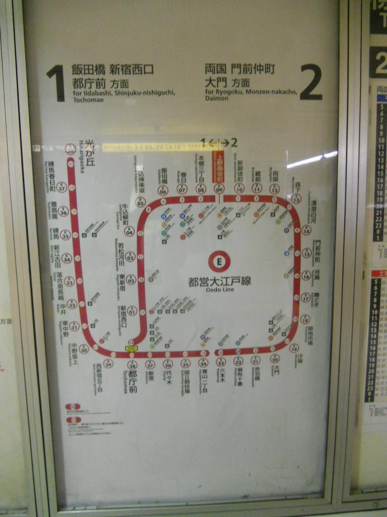 「大江戸線」は、都営地下鉄の4路線の一つで、練馬区の光が丘駅と都庁の区間と、山手線のように環状に通っている区間で構成されています。