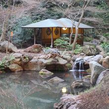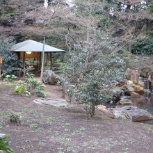 六義園の池を出汐の湊から右回りに進んで行くと千鳥橋がある。そこから池の反対側を見ると公園によくある東屋の様な形をした滝見の茶屋があります。滝見と言うので何処に滝があるのかと捜してみると、落差50cm程の小さな滝が池に流れ込んでました。もっと大きな滝を見て楽しむ茶屋だと思ったのですが、意外と地味でした。