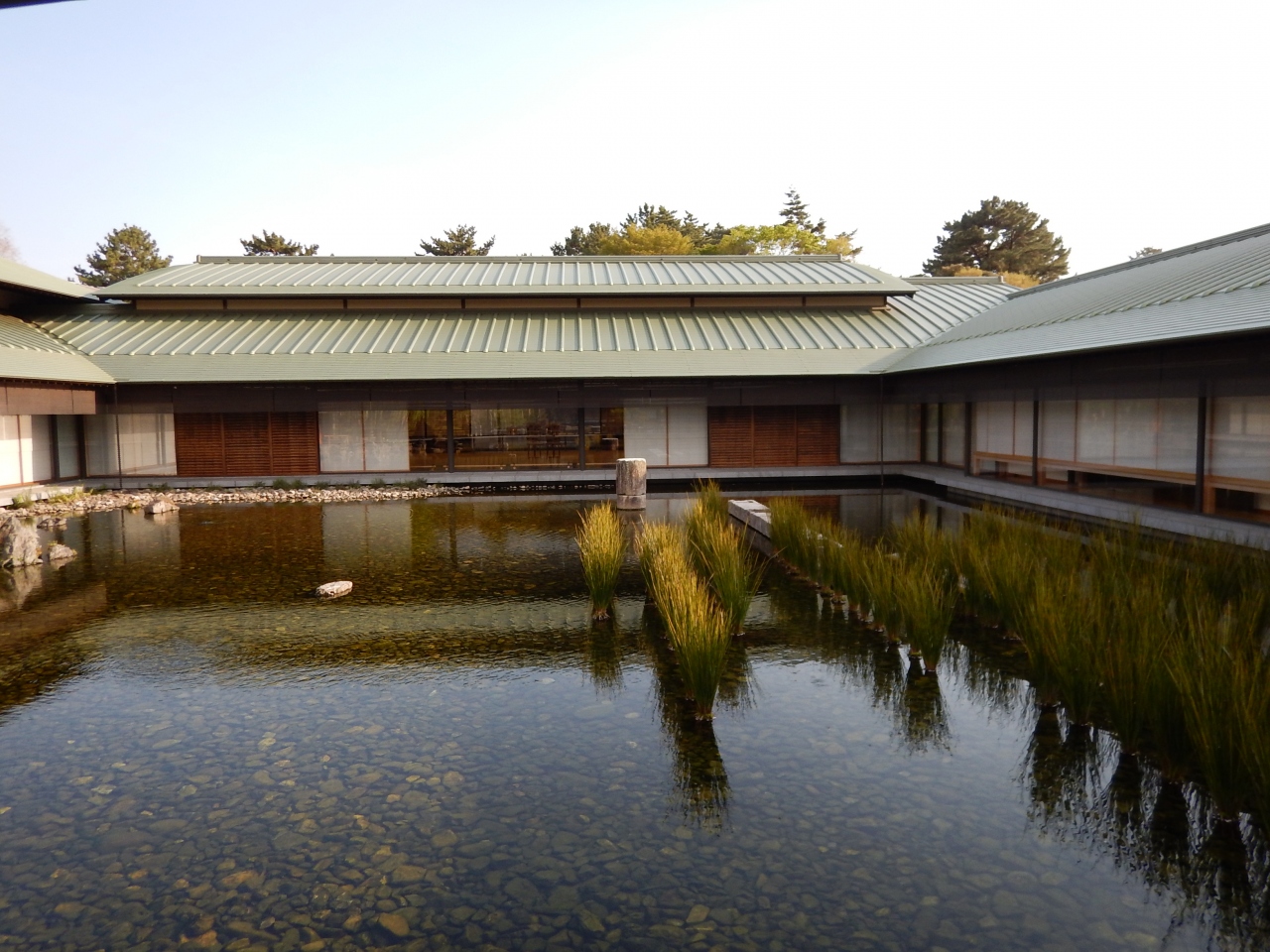 京都御所の東側にあります。京都御所内というと、昔ながらの建物と思うかもしれませんが、実際にできたのは平成の2ケタ。内部こそ和風で作っており、非常に芸術性が高いものもありますが、地下には立派な駐車場があるなど近代的な建物です。