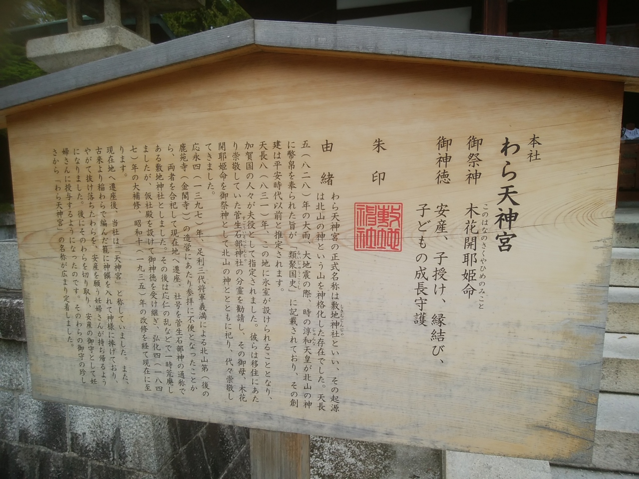 原谷苑へ桜を見に行く際に、こちらのわら天神前からシャトルバスを利用しました。せっかくなので、わら天神にもお参りさせていただくことに…。