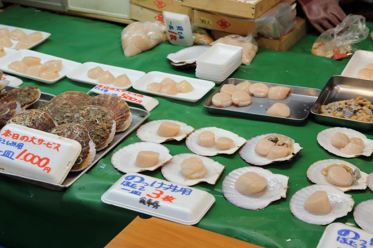 青森駅の近くにある市場です。釧路の和商市場を始めとして、各地の市場で丼飯に市場で売っている具材を自由に乗せて楽しむ、という所謂勝手丼が持て囃されていますが、こちらも『のっけ丼』という名称で展開しています。観光客には大人気で、私が行った日も朝から皆さんのっけ丼を楽しまれていました。駅からは歩いて5分程度です。青森駅東口を出て正面の道を進み、アウガのある信号を右(南)に曲がって真っ直ぐ進んでください。最初の交差点の直ぐ先にあります。